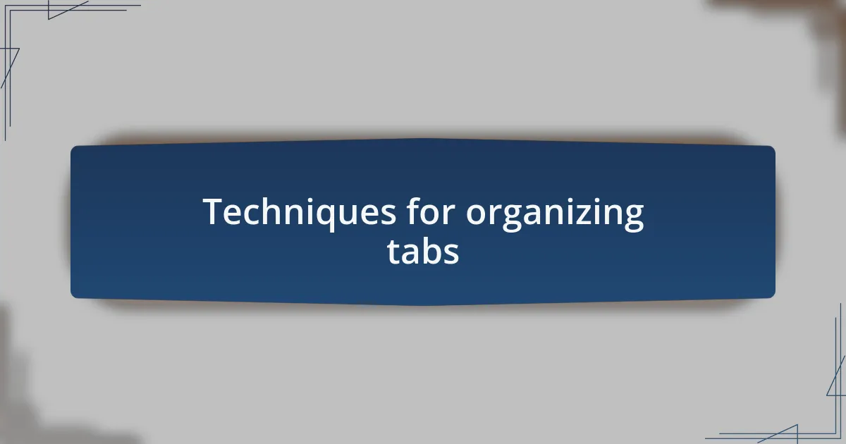 Another technique that I’ve found beneficial is using vertical tabs. This layout change revolutionized my browsing experience. I used to feel overwhelmed by a long horizontal strip of tabs; switching to a vertical view allows me to see more at once without feeling cramped. Plus, I can see the full titles of each tab, which makes navigation smoother. Have you ever experienced that sense of relief when everything just seems to fall into place? That’s the magic of effective tab management.