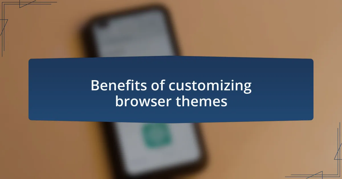 In addition to aesthetics, browser themes can functionally improve navigation. For instance, I frequently use themes that highlight bookmarks or tabs, making them easier to spot at a glance. It’s fascinating how something as simple as color can streamline my workflow. Have you ever tried a theme that organized your browser layout to better suit your needs?